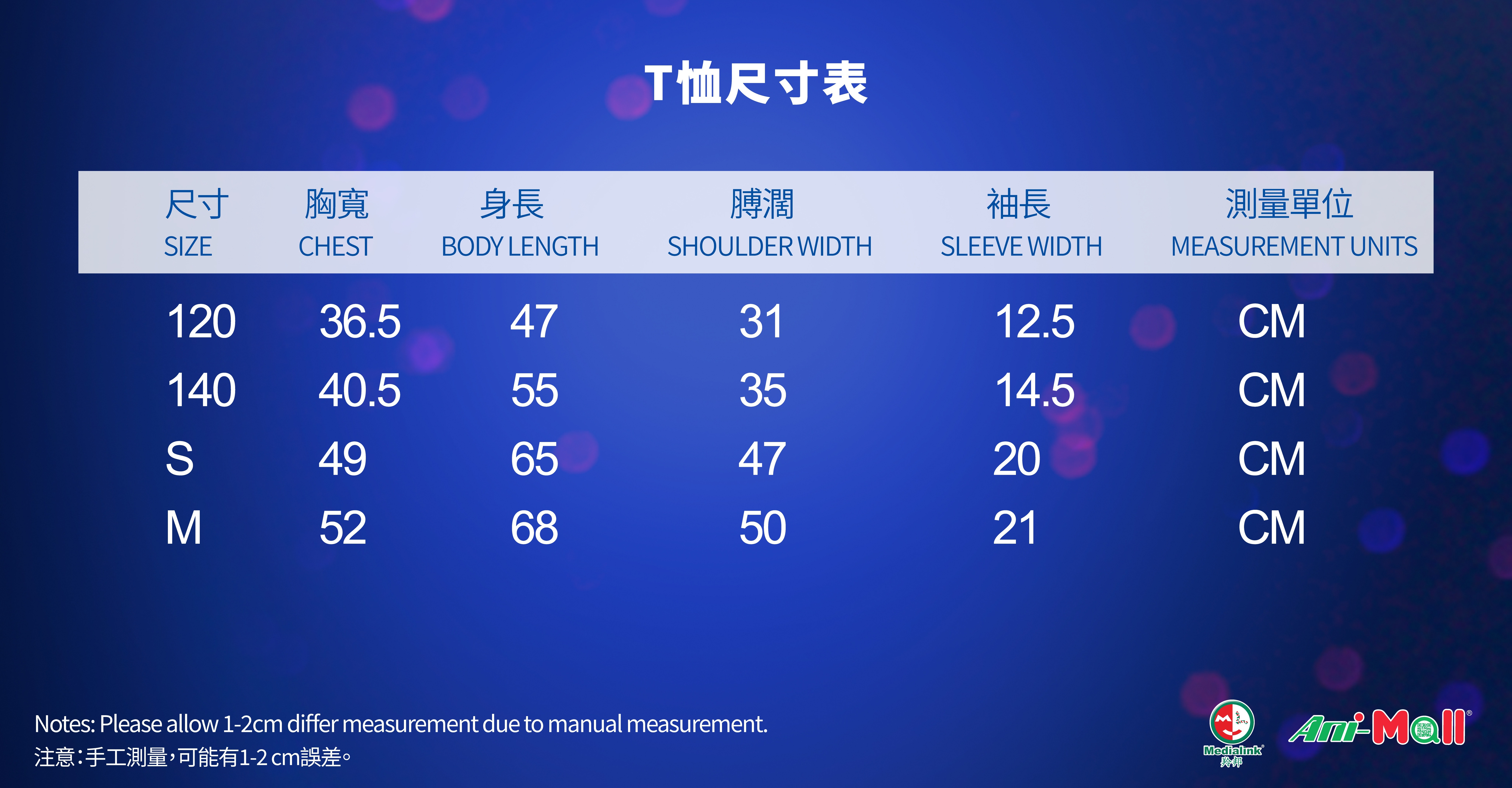 • 手工測量,可能有1-2 cm誤差。